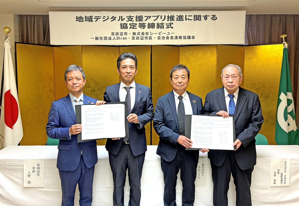 2025年9月25日、京都府京田辺市、一般社団法人Shienおよびシーピーユーの三者は、地域の課題解決や市民の生活の質的向上を図るため「地域デジタル支援アプリ推進に関する協定」を締結し、各区・自治会へ地域ICTプラットフォームサービス「結ネット」の導入を促進します。
