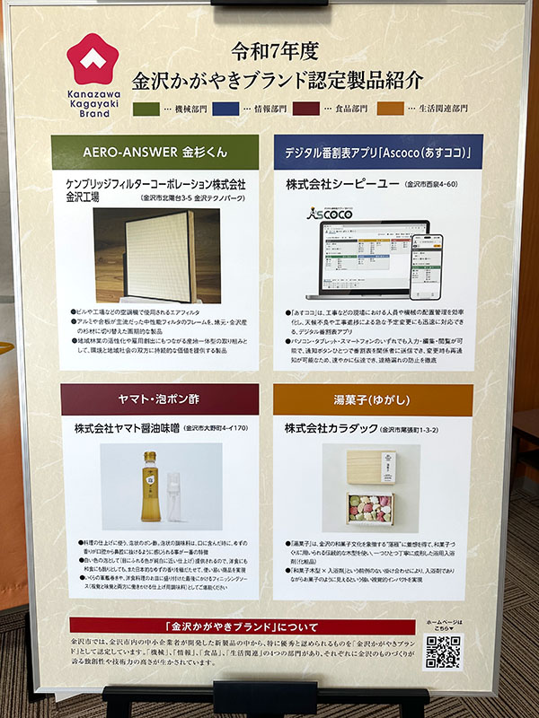 「金沢かがやきブランド」は、金沢市が市内の中小企業者等の新製品開発を促進し、ものづくり産業の振興を図ることを目的として設けられた認定制度です。