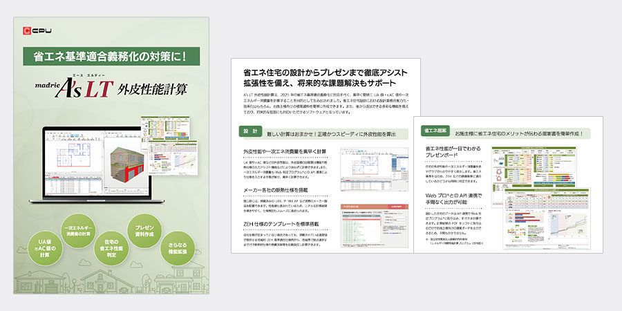建築CAD「A's(エース)」の外皮性能計算機能に特化し、独立して稼働する製品です。UA値、ηAC値の計算、一次エネルギー消費量の計算、住宅の省エネ性能判定、プレゼン資料作成、更なる機能拡張について、ご紹介しています。