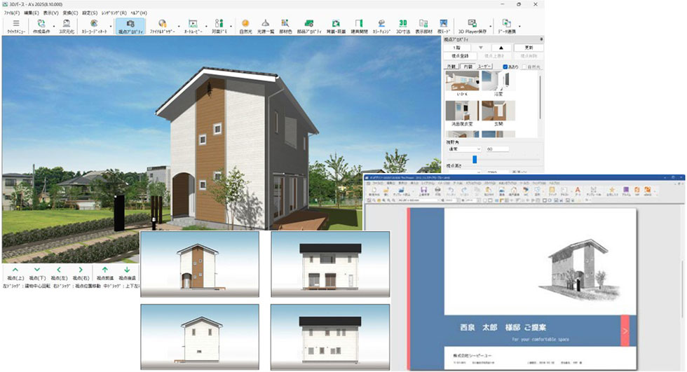 A'sトレーニングマニュアル「プレゼン編」を利用し、入力済のプランに対して、3Dパースでの画面操作を中心に関連機能やプレゼンボード作成についてご説明いたします。